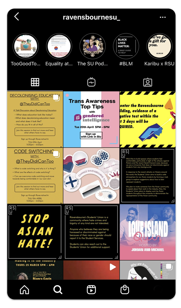 During my time at this job, I had the pleasure of working closely with Ravensbourne's Student Union as my valued client.